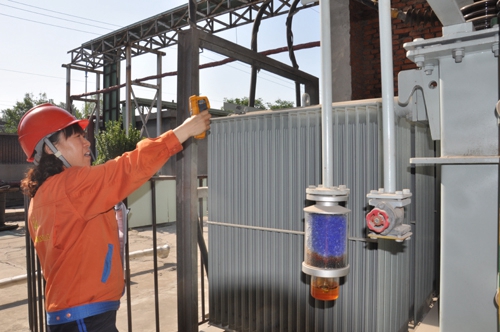 圖為:電氣人員對主變壓器的運行溫度進行測量