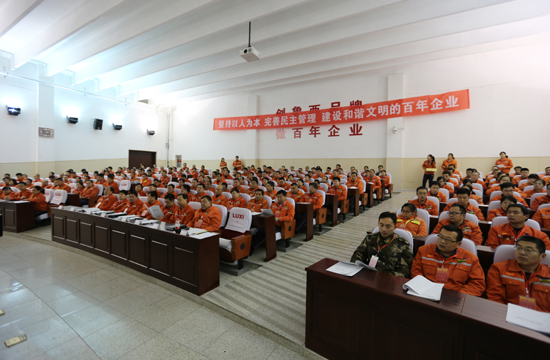 圖為集團(tuán)副總經(jīng)理、第五屆工會(huì)主席王福江同志向大會(huì)作報(bào)告。