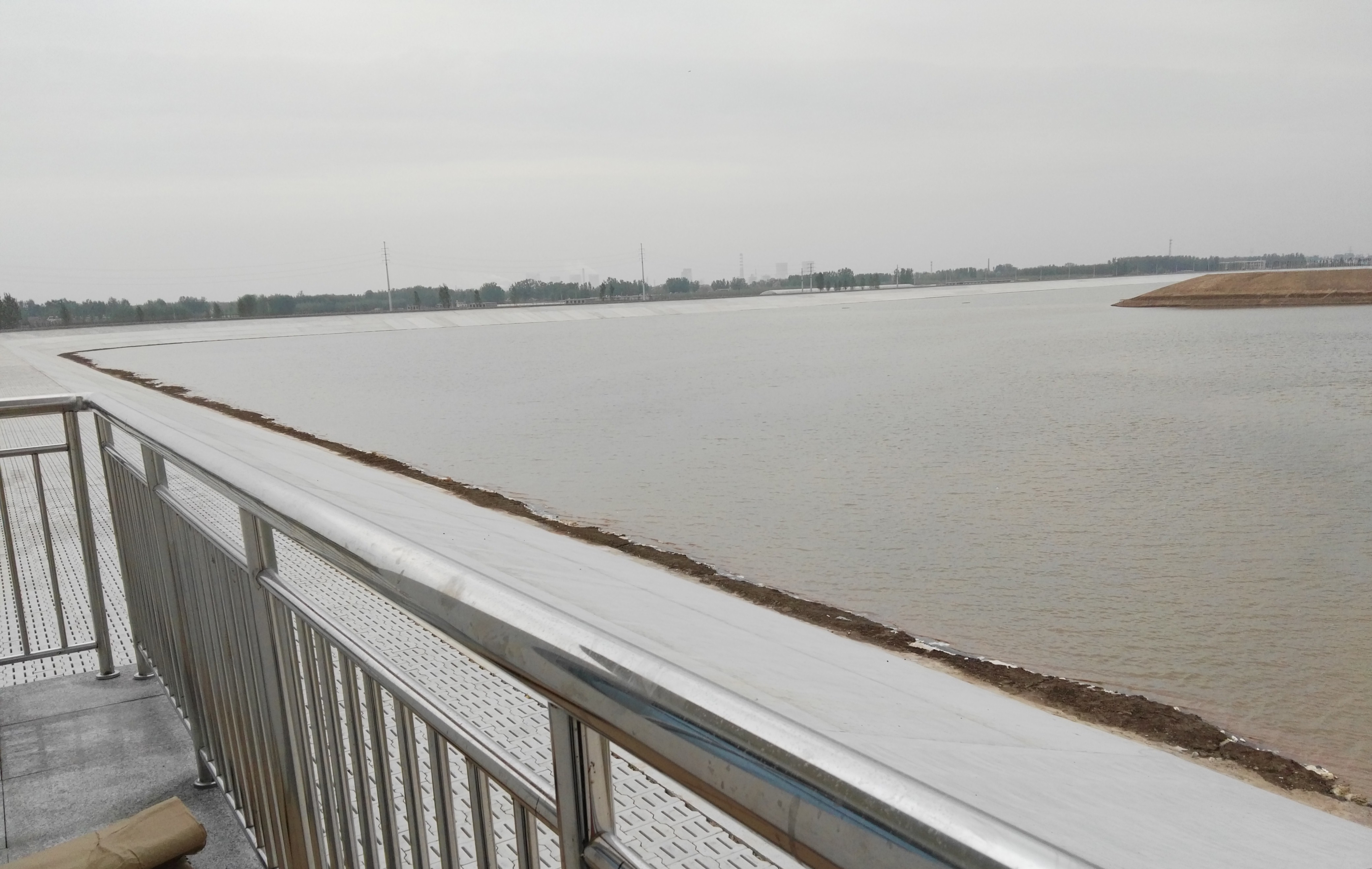 大秦水庫位于東阿縣銅城辦事處大秦村附近,總占地面積5433.34畝,工程投資約6.2億元。水庫總庫容722萬m3,水庫最高蓄水位34.9m,水庫壩體防滲采用符合土工膜防滲體,壩基垂直防滲采用混凝土防滲墻。供水管道工程分兩條線路,一條向東阿縣開發區水廠供水,一條向魯西集團化工工業園區供水,日供水總量7.34萬m3/d。輸水管道工程采用單管輸水,長度為21.025km。水庫壩頂輔設了4米寬瀝清路面,周圍環境優美,綠樹成茵,湖水碧波蕩漾。