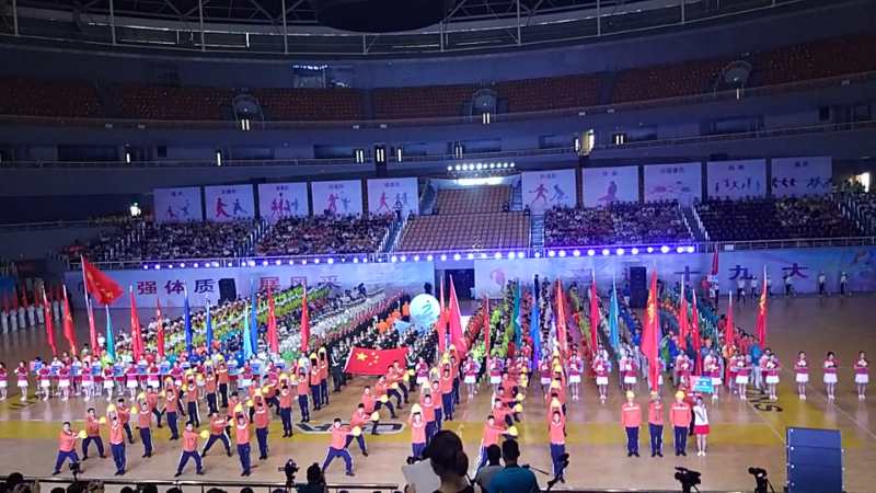 伴隨著振奮人心的《運動員進行曲》,由百余名健兒組成的運動員方隊踏著整齊的步伐,英姿颯爽意氣風發地進入運動場。