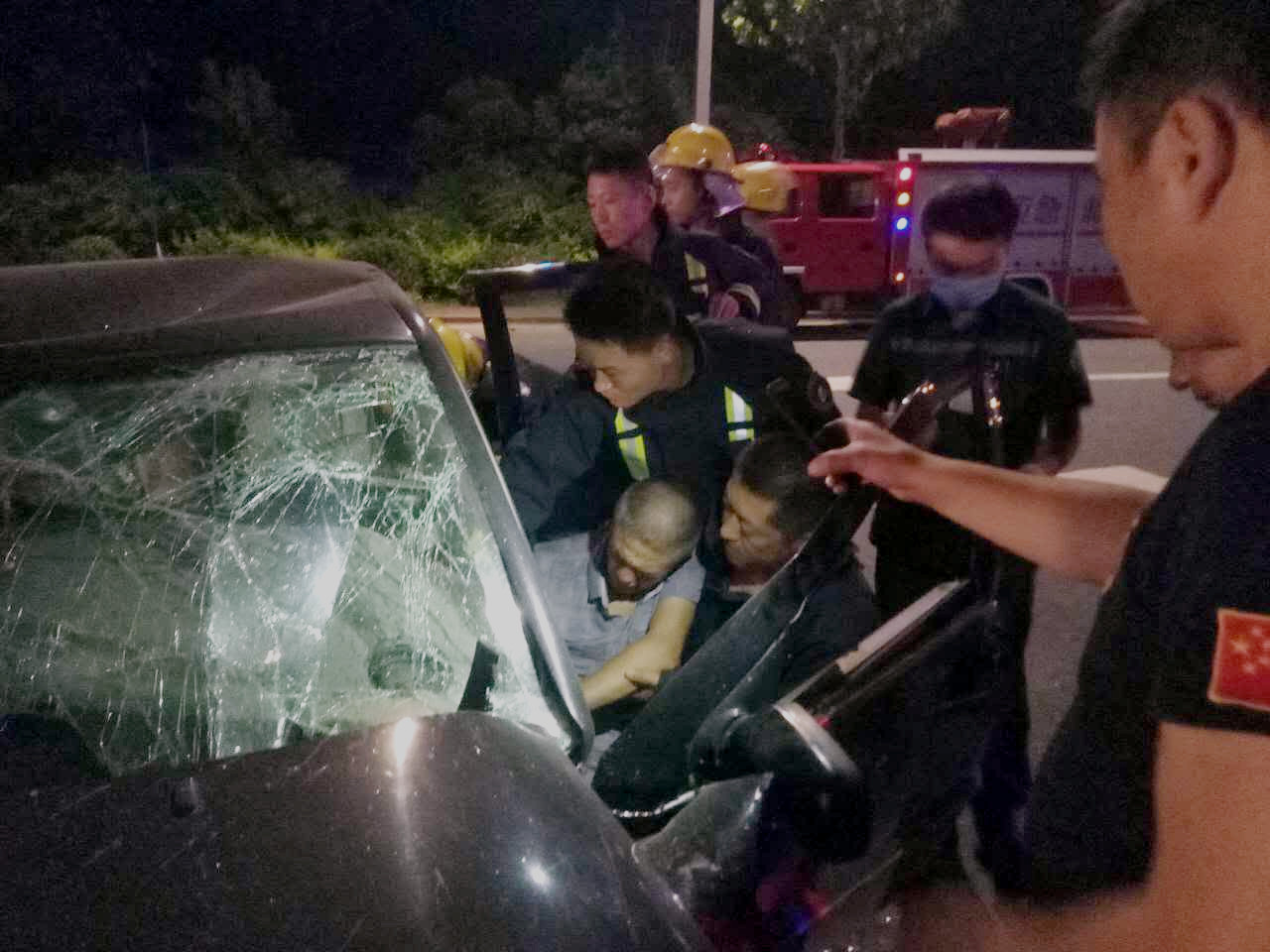 7月20日凌晨1:10分,魯西集團應急救援中心接值班應急調度報警,集團1#門崗西側329省道發生交通事故,駕駛員被困車內情況危急,需應急救援中心實施破拆救人。接警后值班隊長迅速組織隊員開15噸水罐車和多功能救援車趕赴現場,展開了一場拯救生命的救援行動。