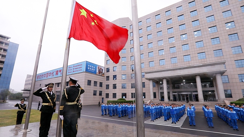 在和風(fēng)細(xì)雨中,伴隨著莊嚴(yán)的國歌,神圣的五星紅旗冉冉升起。所有在場的干部員工用不懼風(fēng)雨的堅毅和整齊和諧的自律向祖國母親致以最親切、最熱烈的敬意。