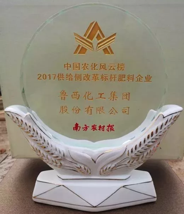 會上,魯西化工集團股份有限公司憑借研發(fā)、推廣新型農(nóng)資和新模式的能力,以及在農(nóng)資行業(yè)供給側結構性改革做出的突出貢獻,榮獲“2017供給側改革標桿肥料企業(yè)”稱號。