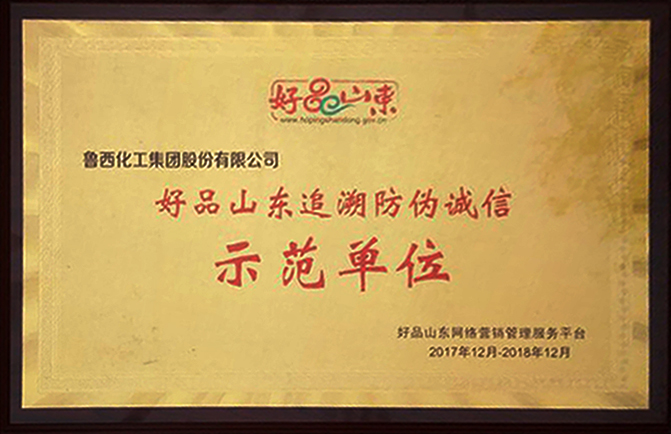 近日,魯西化工集團(tuán)股份有限公司榮獲“好品山東追溯防偽誠信示范單位”稱號。