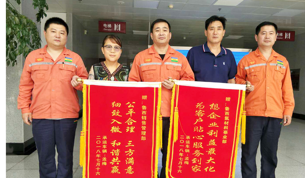 7月30日,東阿明鑫物流公司車輛負責人王長義、孟梅來到魯西集團,激動地將印有“公平合理 三方滿意 細致入微 和諧共贏”、“想企業利益最大化 為客戶貼心服務到家”字樣的兩面錦旗送到銷售管理部物流管理人員李登旭和氟材料事業部銷售經理楊先旗手中,連聲感謝。并向記者講述了一則魯西集團員工公平公正妥善處理虧噸事件的故事。