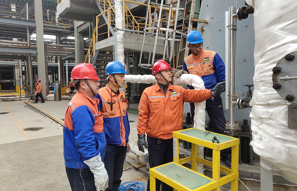 記者發(fā)現(xiàn),此次鋪放電纜的管廊西側屬于硫酸罐區(qū),電儀安裝隊隊長卓華斌來到作業(yè)現(xiàn)場,第一件事就是進行危險源辨識,在對員工檢查各自安全防護用品時,他走到罐區(qū)前設置的各個危險化學品安全告知牌前,仔細閱讀告知內(nèi)容。“作為管理人員,我必須第一時間了解掌握作業(yè)區(qū)域有毒、有害介質理化特性,才能及時將安全防護注意事項傳達給員工?!痹陔S后現(xiàn)場集合時,卓隊長將相應的安全防護及逃生措施講解給大家,并再三叮囑登高作業(yè)人員配備好相應的濾毒罐,檢查防毒面具無破損后再登高。