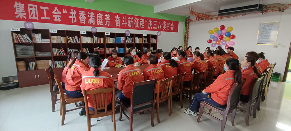 在魯西集團職工活動室,集團工會組織各單位的一線女工開展“書香三八”讀書活動。大家誦讀經典、品味書香,迎接屬于自己的節日。活動還為女工們送上了精美的節日禮物以示祝賀。