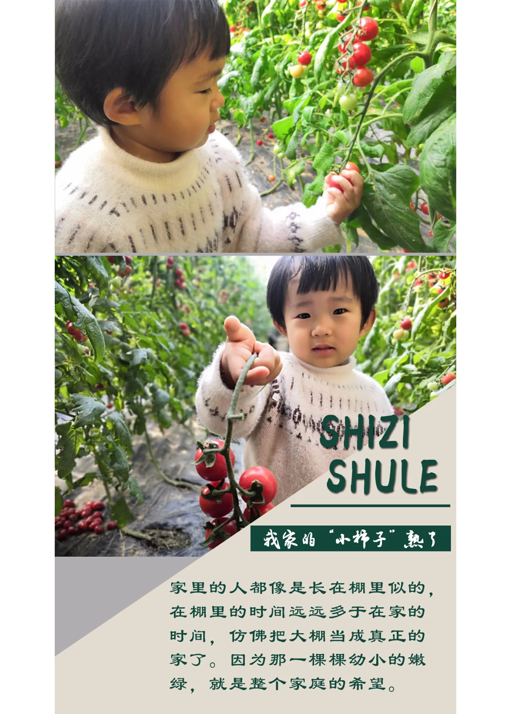 “爸爸,你看,小柿子兒(圣女果)”,女兒稚嫩的驚喜聲,透漏出她歡喜的心情。受疫情影響,孩子好長時間沒有見到奶奶了。趁著休班,駕車帶著妻子和孩子回趟老家,看看父母、幫幫農活。還沒到家,就直奔孩子奶奶家的溫室大棚,大棚里栽種的圣女果已經(jīng)成熟。還清楚得記得,年前還沒有疫情影響的時候,帶著妻子和孩子在棚里幫忙栽種的情景。